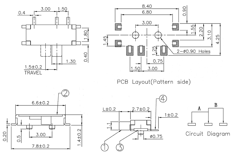七腳撥動開關MSK微型撥動開關產品簡介 Product brief: