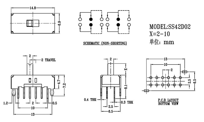 微型撥動開關(guān)技術(shù)參數(shù):