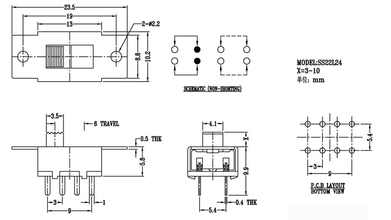 微型撥動開關技術參數: