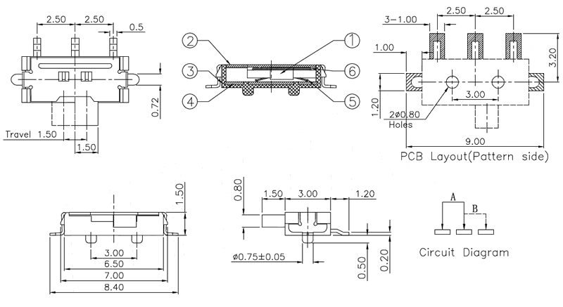 微型撥動(dòng)開關(guān)技術(shù)參數(shù):